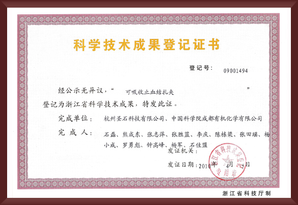 杭州圣石科技股份有限公司位于杭州錢塘區杭州醫藥港,是浙江省首家致力于可吸收醫用耗材與醫用生物可降解合成材料創新醫療器械研制和產業化的國家級高新技術企業。系國家科技部科技支撐計劃項目、浙江省重點研發計劃項目、浙江省重點技術創新專項計劃項目承擔單位,浙江省腹腔臟器微創診治臨床醫學研究中心成員企業,浙江省重癥肝膽疾病(微創)診治技術研究中心成員單位,中國醫學裝備協會理事會理事單位,中國醫學裝備協會轉化醫學分會副會長單位。2016年入選浙江省經信委行業“隱形冠軍”培育企業,2018年入選及獲評杭州市戰略性新興產業企業及杭州市企業高新技術研發中心,2019年獲評杭州市企業技術中心,企業商標圣石®已被評為杭州市著名商標。2020年獲評杭州錢塘新區具跨越式發展特質的“雨燕企業”稱號,并在政府引導的“畝均論英雄、創新論英雄”為發展理念的企業評優活動中,獲評錢塘新區A級規上工業企業。2021年獲評浙江省科技廳創新醫械省高新技術企業研究開發中心。企業聯合中科院共同研制的國內首創微創外科手術必備耗材速豐®“可吸收止血結扎夾”,該產品已獲國家發明專利授權,并榮獲“浙江制造精品”稱號,2020年入選杭州市第一批優質產品目錄。產品自2012上市以來,已陸續進入國內上千家大型綜合性醫院,累計上百萬病患手術獲益。在其適用范圍內已能完全替代金屬及塑料等非吸收同類產品,達到術后按時降解,體內無存效果。產品性能已達到或超越進口同類產品水平,填補了國內產品空白,產品以其卓越品質在臨床使用中的安全性與有效性,得到了廣大臨床醫護人員的一致肯定,實現了國產替代進口的國戰略目標。