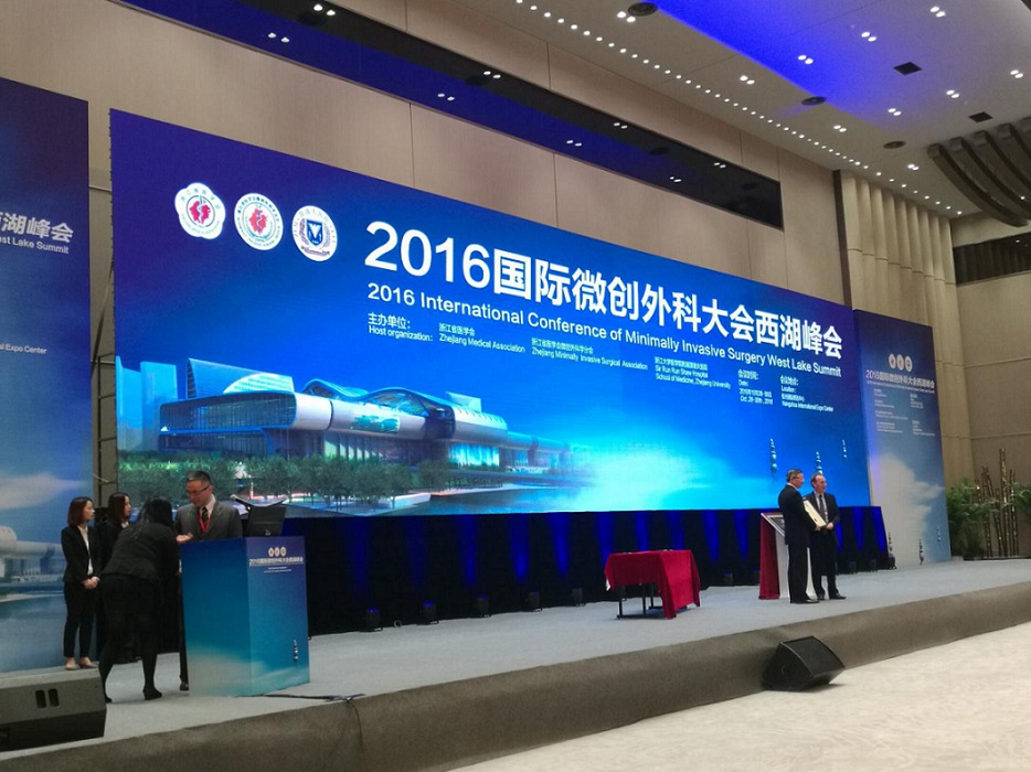 2016年10月29日,第二屆2016國際微創外科大會西湖峰會在中國杭州國際博覽中心隆重召開。本次學術會議由浙江省醫學會、浙江省醫學會微創外科學分會、浙江大學醫學院附屬邵逸夫醫院共同主辦。本次大會以“精準微創、創新交流”為主題,開幕式上,由英國皇家英格蘭外科學院與浙江大學醫學院附屬邵逸夫醫院共同聯合創辦的“微創培訓中心”進行揭牌儀式,并邀請美國、法國、澳大利亞、日本、巴西及國內著名普外科和微創外科院士、專家、學者齊聚一堂,參加會議的學者達1000多人。本次學術交流會拓展了專家學者們的國際視野,激發了參會者的創新熱情,增強了醫學界國際間的合作交流,也標志著我國微創外科臨床技術水平已居世界領先水平!